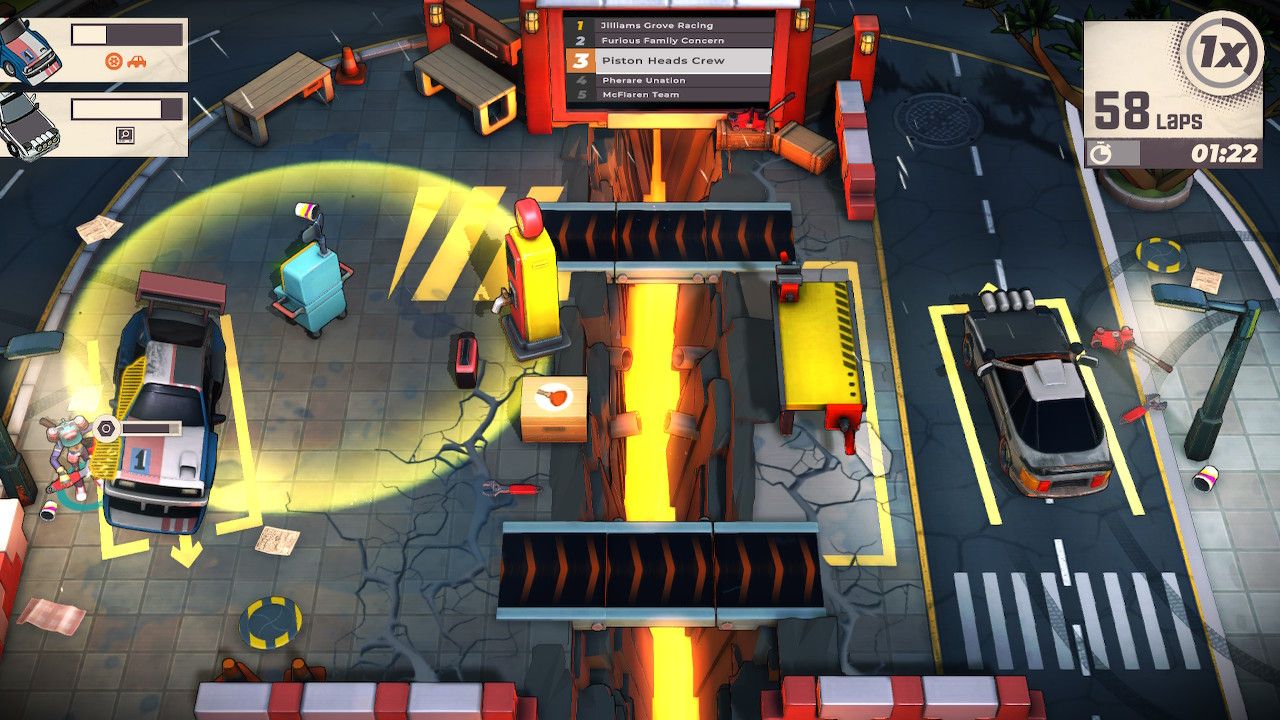 Aunque tiene un tema de equipo de mecánicos de automóviles aplicado, Tripulación de velocidad recuerda mucho a los juegos de fiesta cooperativos como Sobrecocido. Hay muchas herramientas a disposición del jugador para correr rápidamente, diagnosticar, repostar y reparar los autos de rally para regresarlos a la pista, pero también muchos desafíos que superar. Ya sea tratando de evitar ser atropellado por coches que pasan, apagando incendios de meteoritos que caen del cielo o calculando el tiempo para que las plataformas móviles crucen de una zona a otra, Tripulación de velocidad ofrece una experiencia que es tan desafiante como divertida.