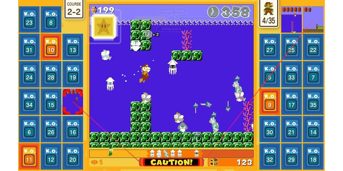 Para aquellos que no lo saben, la premisa de Super Mario Bros.35 es bastante simple. Los jugadores se sumergen en un clásico. Super Mario Bros. nivel con una vista de otros 34 usuarios que aparecen enmarcados alrededor de la pantalla del usuario. Aquellos que juegan pueden seleccionar uno de los competidores para eliminarlo, y los enemigos derrotados emergen en la pantalla del otro. Goombas, Koopas, Piranha Plants e incluso copias del propio Bowser son juegos gratuitos y están disponibles para ser convocados en pantalla si son derrotados. Si Mario llega a su fin, el perdedor recibe su rango de 35 y luego es libre de saltar a otra partida si así lo desea.