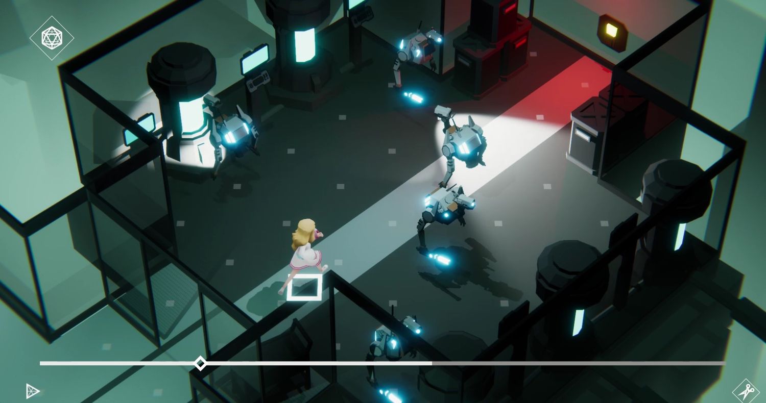 Timelie comienza con una protagonista anónima atrapada en un mundo abstracto poblado por robots que intentan capturarla. Pasa los primeros momentos del juego tratando de escapar de estos robots lo mejor que puede, pero descubre que no es lo suficientemente rápida para evitarlos. Después de que un puente se derrumba y la niña se precipita hacia su muerte, se da cuenta de que puede retroceder el tiempo y evitar caer. Esto configura el resto del juego, ya que el jugador debe usar los poderes del tiempo para evitar robots en todos los niveles siguientes.