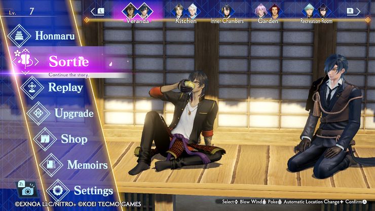 Guerreros Touken RanbuEl combate es grandilocuente, pero el juego se ve bien y funciona sin problemas en el hardware limitado del Switch. Una pequeña queja es la falta de una pista de audio en inglés. En circunstancias normales, esto no es realmente un problema, pero se vuelve molesto ya que el juego no contiene subtítulos, solo texto con guión. Todos los diálogos de la historia son totalmente accesibles, si es molesto tener que leerlos en el fragor de la batalla, pero todos los diálogos incidentales en los menús o en la base de operaciones de Honmaru se pierden por completo para cualquiera que no hable japonés con fluidez.