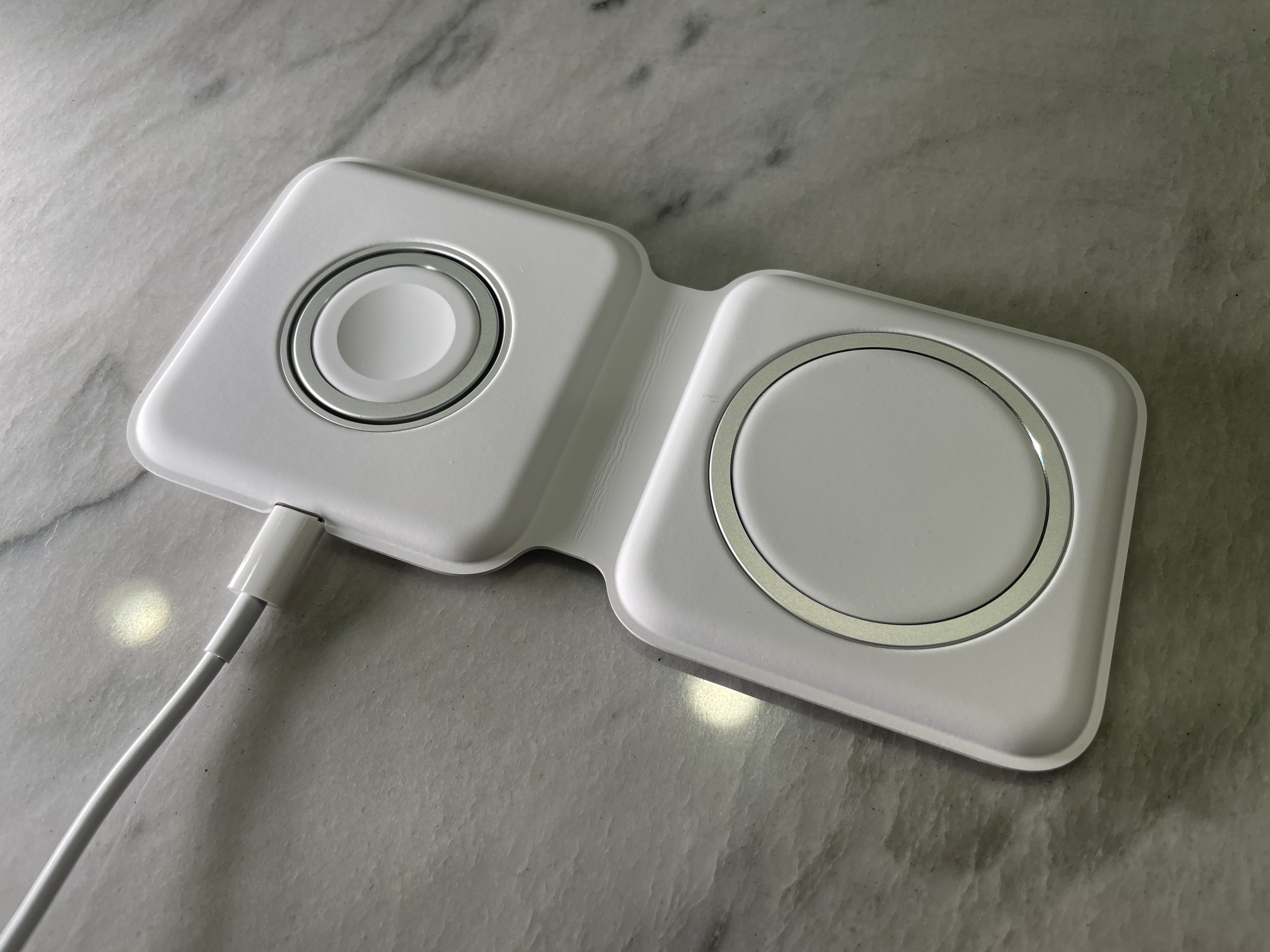 Además del nuevo iPhone 12 mini y el iPhone 12 Pro Max, pude probar el nuevo cargador MagSafe Duo de Apple. Es un cargador de viaje doble plegable que admite tanto un iPhone con MagSafe como un Apple Watch con su cargador magnético más tradicional.