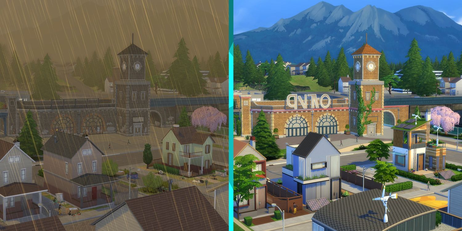 “/> Los jugadores ahora también pueden hacer que sus Sims vivan más fácilmente fuera de la red con la adición de estaciones de recolección de agua, paneles solares, generadores y otros objetos que facilitan la sostenibilidad. Cuando se combina con Los Sims 4: Vivir en Diminutos, los jugadores ahora pueden construir su propia pequeña casa autosostenible. Los jugadores también pueden elegir que su Sim viva en uno de los dos nuevos edificios de apartamentos. A diferencia de los apartamentos en Vida citadinaEn San Myshuno, estos son edificios más pequeños y modestos con muebles que parecen sacados directamente de una ciudad del Medio Oeste de Estados Unidos.