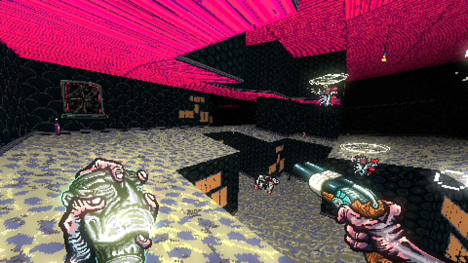 El diseño visual parece sacado directamente del cuaderno de un adolescente, pero no en mal sentido. Hay un pixel art muy detallado para ambas manos del jugador e imágenes un poco más borrosas para los enemigos, lo cual tiene sentido porque la idea es pasar corriendo junto a ellos a máxima velocidad. Cada vez que el jugador muere (y morirán muchas veces), la pantalla se llena de imágenes confusas y la banda sonora se detiene. Los patrones aleatorios y las luces multicolores a veces dan paso a una cara inquietante, pero aparentemente nunca es el mismo conjunto de imágenes dos veces. Después de eso, el jugador se queda con un recuento de puntos y la tentadora opción de volver a intentarlo en otra sesión intensa.