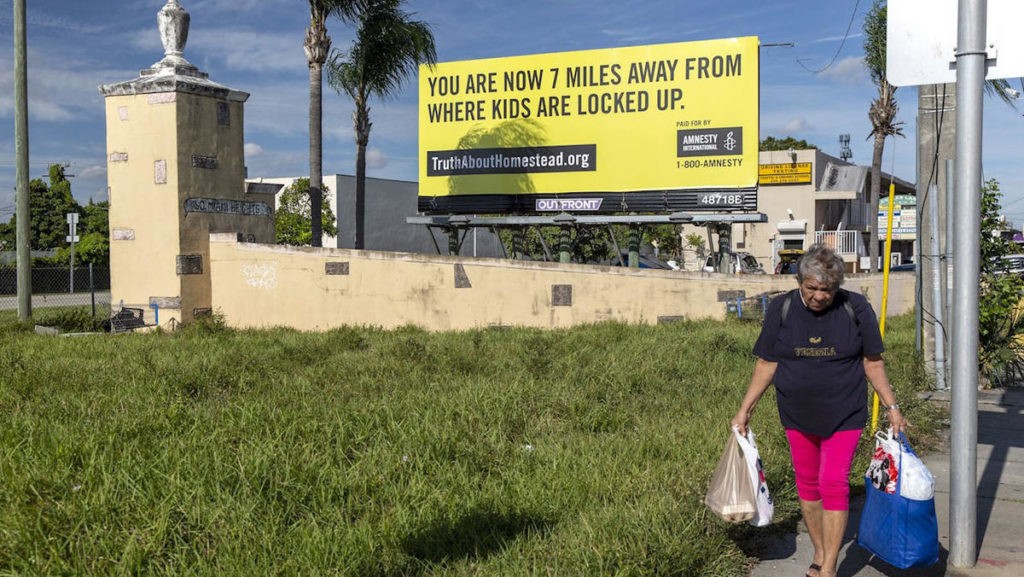 AI escogió Florida para lanzar la campaña mediática “I Welcome”, compuesta, entre otros, por vallas publicitarias “dirigidas a Trump” en las que piden la liberación de menores migrantes y rechazan su “detención prolongada e indefinida”.