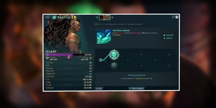 Para mejorar las habilidades de los personajes en Rey arruinado, los fanáticos deberán progresar en el juego hasta que Illaoi alcance el nivel 3. Desde este punto, los jugadores pueden navegar al Personaje menú y seleccione cuál League of Legends campeón que desean aumentar. Los jugadores solo pueden elegir una de las dos opciones de mejora de habilidades, y la que se activó será la habilidad única utilizada en una pelea. Después del combate, los jugadores pueden elegir una opción diferente en cualquier momento que prefieran experimentar con configuraciones contra una variedad de enemigos.