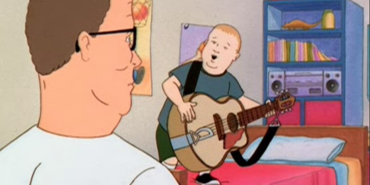 Uno de los mayores sueños de Bobby en Rey de la colina es convertirse en un cómic de utilería. Le da a Hank y al público su primer vistazo de esto en el episodio “Hank’s got the Willies”. Después de conocer a Willie Nelson, Hank va a buscar su preciada guitarra Betsy, solo para descubrir que Bobby la ha alcanzado primero.