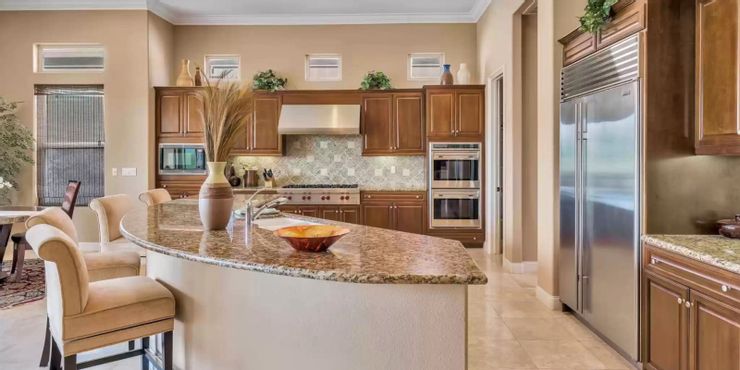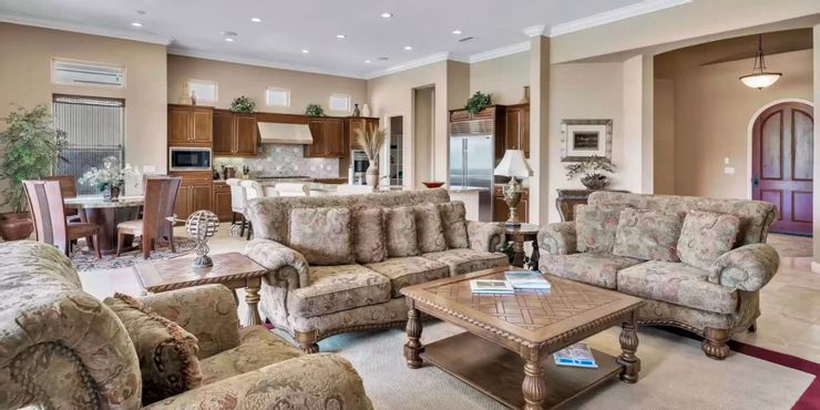 Según las fotos de Desert Sands Realty, la casa también tiene una gran piscina.