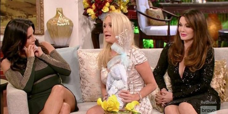 Uno de los colapsos más infames en la historia de RHOBH Ocurrió cuando Kim Richards devolvió el conejito que Rinna le compró a su nieto recién nacido. Durante la reunión de la séptima temporada, Kim devolvió el regalo porque sintió que las intenciones de Rinna no eran puras cuando se lo dio. Ella aclaró que era muy supersticiosa y sintió que el conejito tenía mala energía. Rinna lloró infamemente una sola lágrima e inmediatamente salió del escenario. Kim intentó disculparse, pero Rinna no quiso escucharlo e ignoró a Kim por el resto de la reunión.