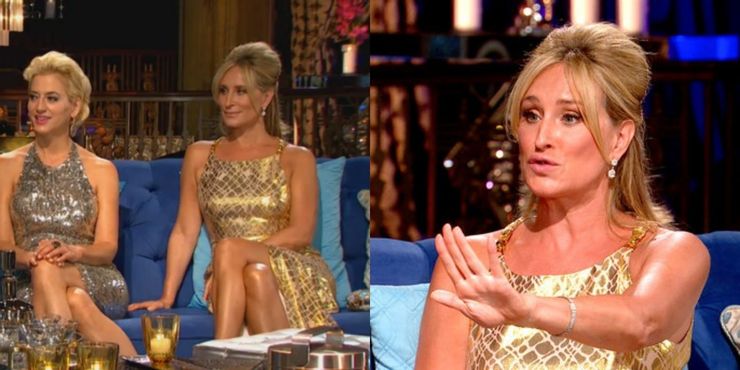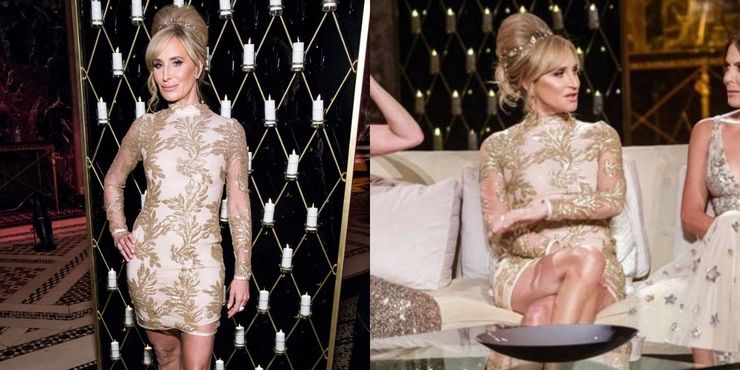 Este vestido y peinado realmente funcionaron para Sonja. Parecía una diosa dorada en la reunión de la séptima temporada.
