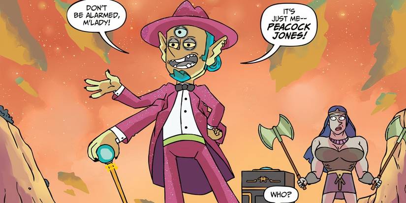 Peacock Jones es un aventurero que viaja en el tiempo y que, al igual que el Doctor, lleva casi exclusivamente compañeras femeninas. Sin embargo, a diferencia del Doctor, Peacock Jones sólo trabaja con mujeres porque espera algo a cambio. Es un depredador sexual que utiliza “llamados a la aventura” para presionar a las mujeres para que se acuesten con él. Naturalmente, Peacock Jones se convierte en el enemigo de Rick, tal vez representando que la franquicia está harta de la médico que comparaciones creando su propio ‘Doctor’ y convirtiéndolo en un personaje absolutamente repugnante.