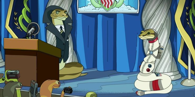 Después de que Morty se entromete en la línea de tiempo de Space Snake, crean viajes en el tiempo y vienen a la Tierra y luchan por matar a Morty. Se pelearon bastante bien, tanto que Rick y Morty no se quedan para combatirlos físicamente. En cambio, Rick retrocede en el tiempo y les da la tecnología para viajar en el tiempo antes para que se auto-saboteen en un momento. Estilo Terminator parodiar y llamar la atención de la policía de la línea de tiempo.