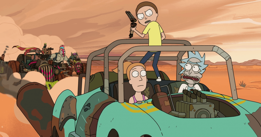 En la tercera temporada el espectáculo se inspiró en Mad Max en el segundo episodio 'Rickmancing the Stone', y nos presentó a un equipo de Death-Stalkers. Esta tropa de metal chatarra que llevaba, rueda en caliente, guerreros del desierto adoraba una gran roca verde, que Rock codiciaba por su valor como fuente de energía. Mientras que en medio de los Acechadores de la Muerte, Morty y Summer se apegan como un medio para lidiar con el divorcio de sus padres, congraciarse en medio de este abigarrado equipo. Mientras tanto, en su realidad, a Beth le quedan versiones robóticas de la familia que no sabe que está luchando en el Blood Dome.
