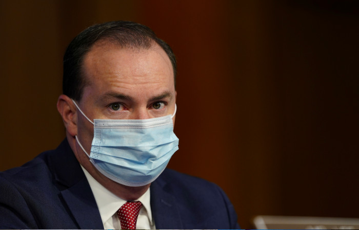 El senador republicano Mike Lee, uno de los dos miembros del Comité Judicial del Senado que dieron positivo, asistió a la audiencia en persona el lunes.