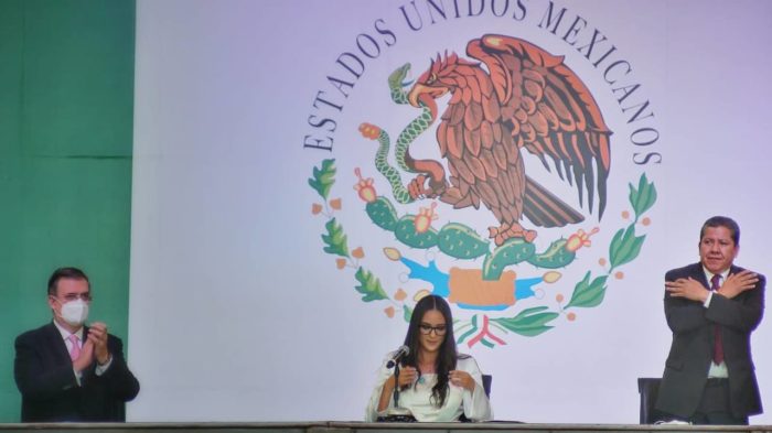 Monreal Ávila saludó la presencia del canciller Marcelo Ebrard Causabón en representación del presidente de la República, de la presidenta del Senado, Olga Sanchéz Cordero, del presidente de la Cámara de Diputados, Sergio Gutiérrez Luna, senadores, diputados federales, integrantes de su familia.