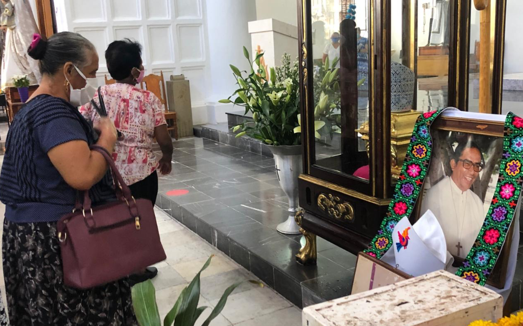 Integrantes de la comunidad católica y amigos del Istmo de Tehuantepec acuden a este recinto religioso en donde le rinden honores póstumos mediante misas, rosarios y guardias de honor.