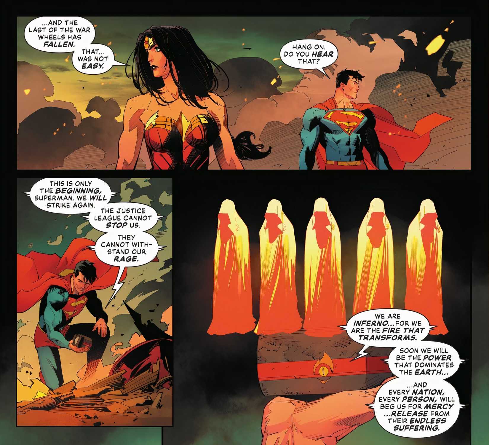 Inferno ha dejado en claro que no se conformarán con nada menos que el control total de todo. Tomar el green es una victoria para ellos, y si pueden subvertir esa fuerza a su voluntad, podrían hacerse cargo de la roja, la podredumbre o el gris hasta que cada faceta de la vida misma sea suya. Es difícil imaginar lo que les ha dado tanto poder para poder dañar el verde. Pero sea lo que sea, Inferno no se detendrá hasta que tengan un control completo, por lo que la Liga de la Justicia será mejor que tenga cuidado, porque Cosa de pantano fue solo el comienzo.