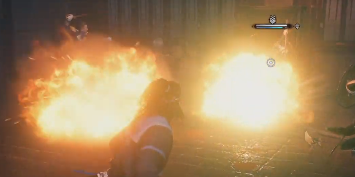 Tus aliados pueden mantener ocupados a los secuaces de Takasugi, pero aun así tendrás que tener cuidado con las bombas que lanzan, como se ve arriba. Entre Takasugi y las bombas de sus secuaces, así como las balas de Takasugi, mantenerse móvil será fundamental para evitar el mayor daño posible y al mismo tiempo mantener la ofensiva.