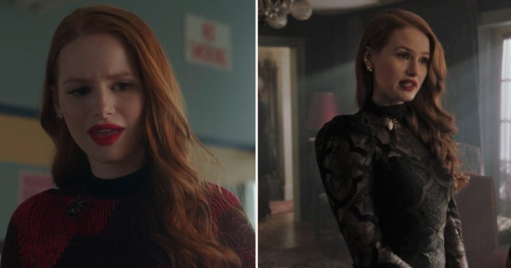 Cheryl definitivamente necesita más tiempo frente a la pantalla para poder admirar sus hermosos atuendos. Por ejemplo, este suéter rojo con volantes y hombros fríos debería haber recibido más atención, pero solo apareció una vez en el episodio final de la segunda temporada en la última escena donde Archie es arrestado.