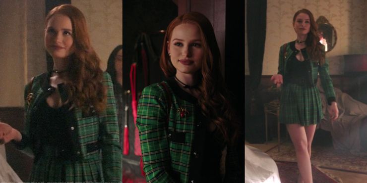 Si Cheryl no se vistiera de rojo, su color favorito sería este rico verde cazador. Se adapta perfectamente a su personalidad y también combina con su omnipresente lápiz labial rojo. Esta combinación de falda y chaqueta fue tan nítida como las mejores citas de Cheryl, y el estampado a cuadros todavía la mantuvo conectada con su sentido del estilo original.