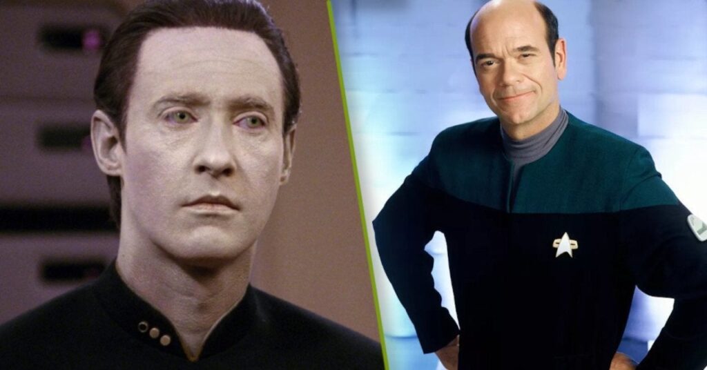 “Bueno, creo que esa fue mi ansiedad cuando obtuve el papel”, dice Picardo. “De hecho, recuerdo haber pensado que sería comparado con él simplemente porque ambos somos personajes de inteligencia artificial. Pero Star Trek es muy bueno. Muy, muy bueno. Los escritores son inteligentes al llevar algo familiar a su audiencia o eso tiene estado antes y luego reinventándolo, dándole un gran giro. En la superficie, la mayor diferencia era que Data era un androide y yo era un programa informático proyectado holográficamente. Así que él es hardware y yo soy software. Y su personaje famoso tuvo sin emoción, al menos hasta que llegaron a la pantalla grande, y mi personaje fue programado para desarrollar una actitud de cabecera como un holograma médico de emergencia. Fue programado con estas señales emocionales para que pudiera adaptarse, aprender y, con suerte, desarrollar la empatía para sus pacientes