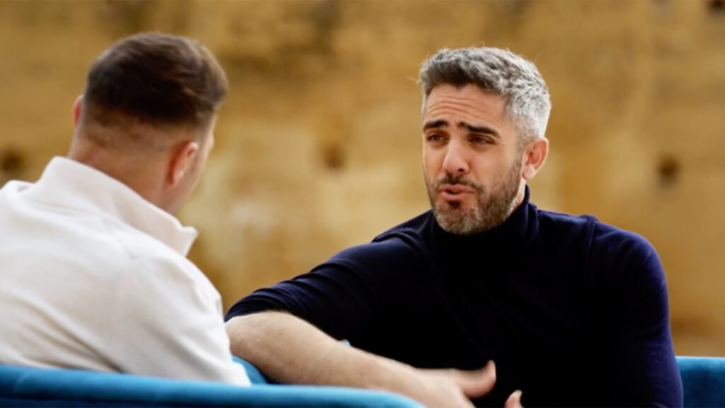 Si hay algo que ha destacado ha sido la confesión de Roberto Leal sobre cómo conoció a su mujer Sara, con quien inició su historia de amor en 2012, aunque se comprometieron en 2015. Se vieron por primera vez en los pasillos de Atresmedia. «Nos conocimos en el buffet de ensaladas», ha revelado, entre risas, Roberto al hablar de la madre de sus dos hijos Lola y Leo. El sevillano ha destacado de su mujer que tiene mucha paciencia, sobre todo, a la hora de escucharle cuando llega de trabajar en Pasapalabra, hablando rápido o le da por rapear, otra de las grandes pasiones del invitado del formato.