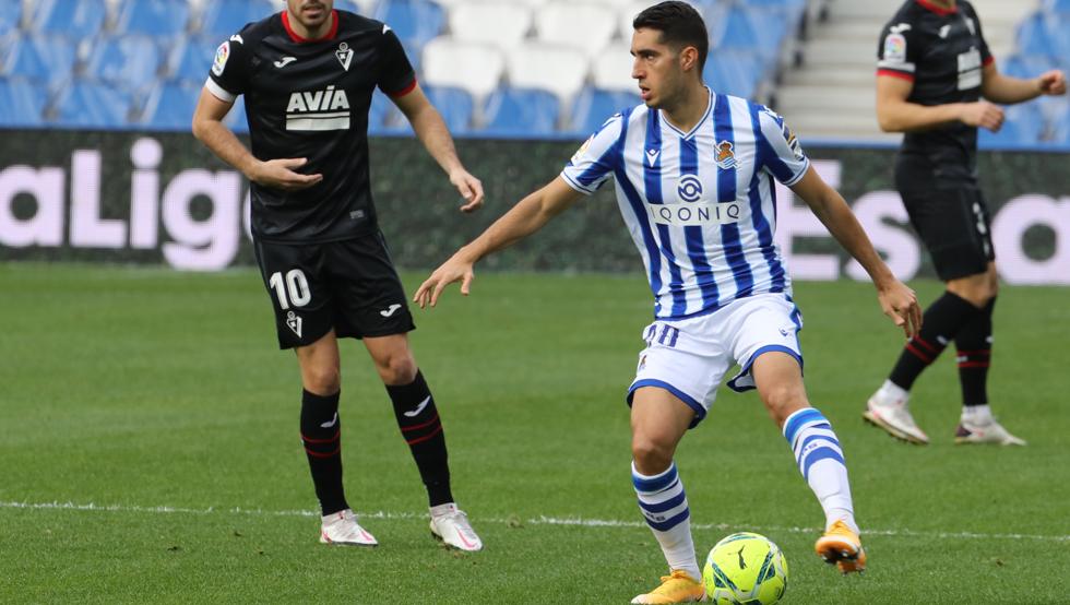 League. No son malos datos para un debutante de 20 años, pero quizá no corresponden a las expectativas que generó con un inicio de campaña fulgurante. Fue titular en el primer partido de Liga en Valladolid y anotó el gol del empate. En los tres primeros encuentros del campeonato anotó dos tantos, el mencionado y otro, un ‘txitxarro’ con la derecha, contra el Elche. El retorno de Silva le envió al banquillo y la lesión del grancanario tenía todas las trazas de devolverle al primer plano del equipo. De hecho, fue titular durante tres jornadas de Liga consecutivas contra el Villarreal (1-1), Alavés (0-0) y el Eibar (1-1), de la jornada 11 a la 13, pero Imanol optó por otras soluciones en el centro del campo a partir de ahí.