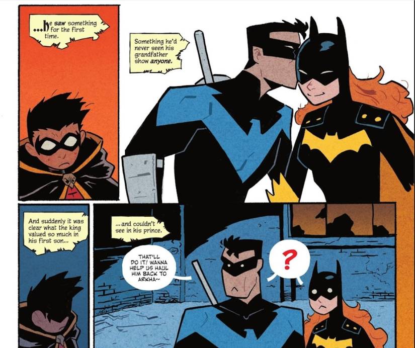 Al observar cómo Nightwing y Batgirl coordinan a la perfección sus esfuerzos contra Clayface, Damian es testigo de la confianza inquebrantable y la sinergia entre ellos. Esta observación lo impulsa a contemplar la filosofía de su familia, en particular las enseñanzas de su abuelo, que descartan las conexiones emocionales como debilidades. Sin embargo, Damian comienza a reconocer que la capacidad de Nightwing para amar y confiar se alinea con las cualidades que su padre, Batman, valora en su hijo mayor. Sin embargo, Damian se siente descorazonado por esta revelación y reconoce que Batman no percibe estas cualidades en sí mismo. En consecuencia, Damian cree que nunca alcanzará el nivel de estima de Nightwing a los ojos de su padre.