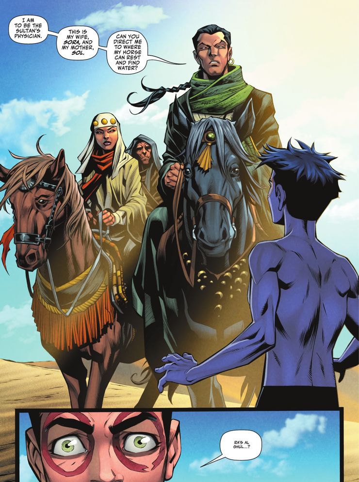 Al ver que Ra’s al Ghul todavía tiene a su esposa a su lado y tiene la intención de ser médico de un sultán, parece que este es el abuelo de Robin antes de que incluso tomara el nombre de “Ra’s al Ghul”. Además, parece que Damian podrá observar los orígenes y el nacimiento de la Cabeza del Demonio en tiempo real, aunque también es posible que sea más que un testigo pasivo. ¿Quizás Robin es la razón por la que Ra’s al Ghul encuentra los Pozos de Lázaro en primer lugar, creando todo tipo de ciclos de tiempo paradójicos (pero entretenidos)?