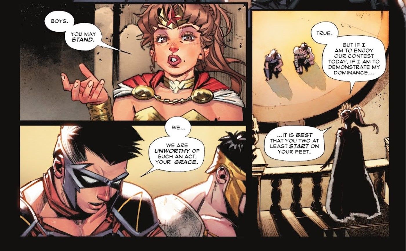 Si bien el conjunto de gladiadores de Robin se destaca como uno de sus looks más geniales, es lamentable que esta mejora de armadura haya sido solo una transformación temporal. Sin embargo, surgen destellos de esperanza para el regreso de la estética de Gladiator Batman. Los informes confirmados indican que Lizzie extenderá una invitación a Robin y Superboy para visitar Themyscira en los próximos años. Trinidad historia presentada en Mujer Maravilla #5. Estar en Paradise Island y sumergirse en la cultura amazónica podría ser la oportunidad ideal para que Tom King y Belen Ortega les den una nueva apariencia a los chicos. Con Damian y Jon, los fanáticos podrían ver cómo sería un chico amazonas raro e inaudito.