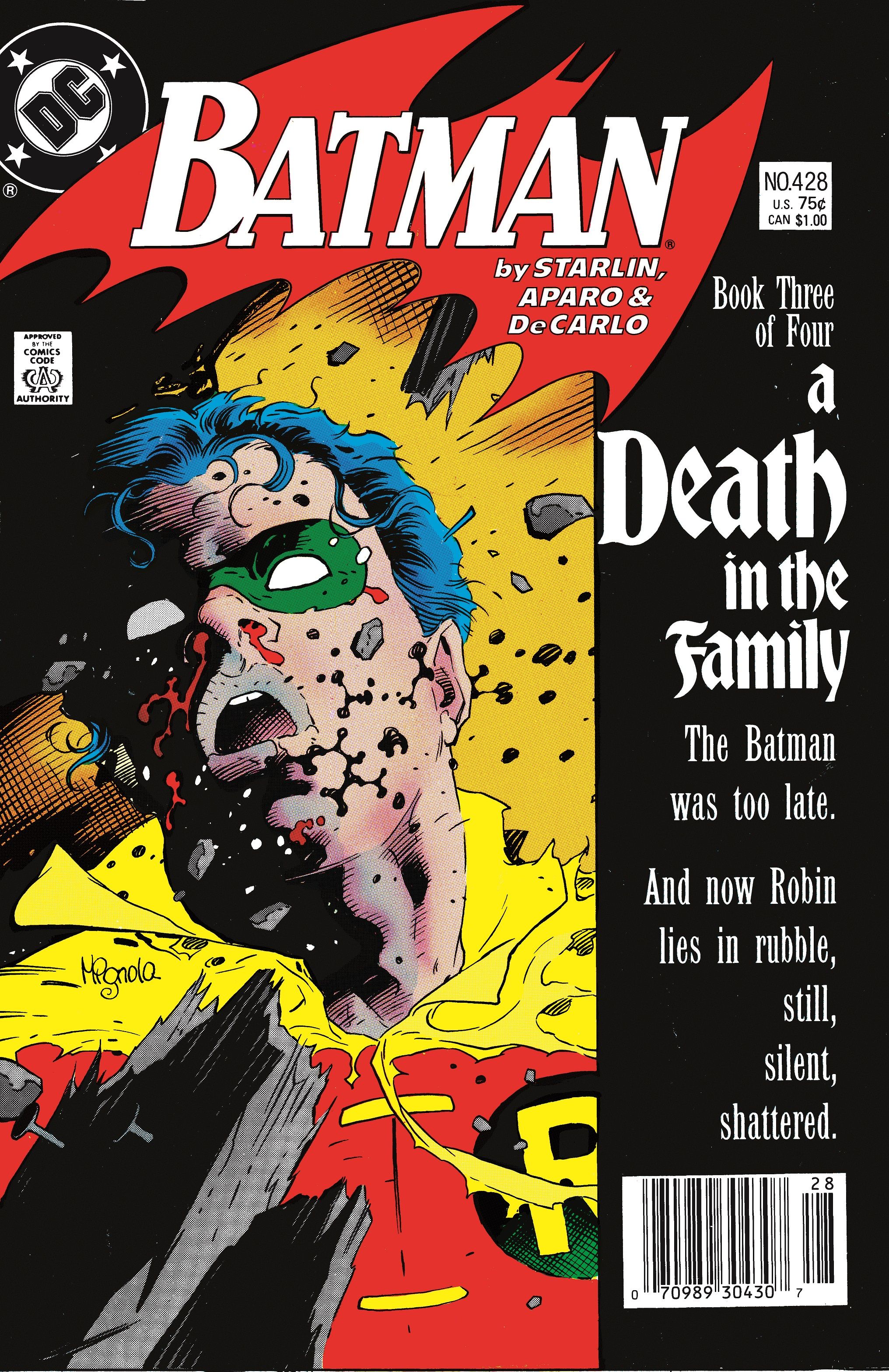 Durante el panel Gotham City Confidential de DC Comics en la Comic Con de Nueva York, el editor anunció planes para lanzar una edición ‘falso-símil’ de Batman #428, el penúltimo capítulo de la icónica historia. Sin embargo, este cómic no reutilizará el contenido habitual donde Robin muere después de quedar encerrado en un edificio que explota. En cambio, esta nueva versión contará con el final alternativo de la historia. haría haber usado si los fanáticos hubieran votado para que Jason Todd viviera. La próxima edición de Batman #428 presenta material del equipo creativo original de “A Death in the Family” formado por Jim Starlin, Jim Aparo, Adrienne Roy, Mike DeCarlo y John Costanza.