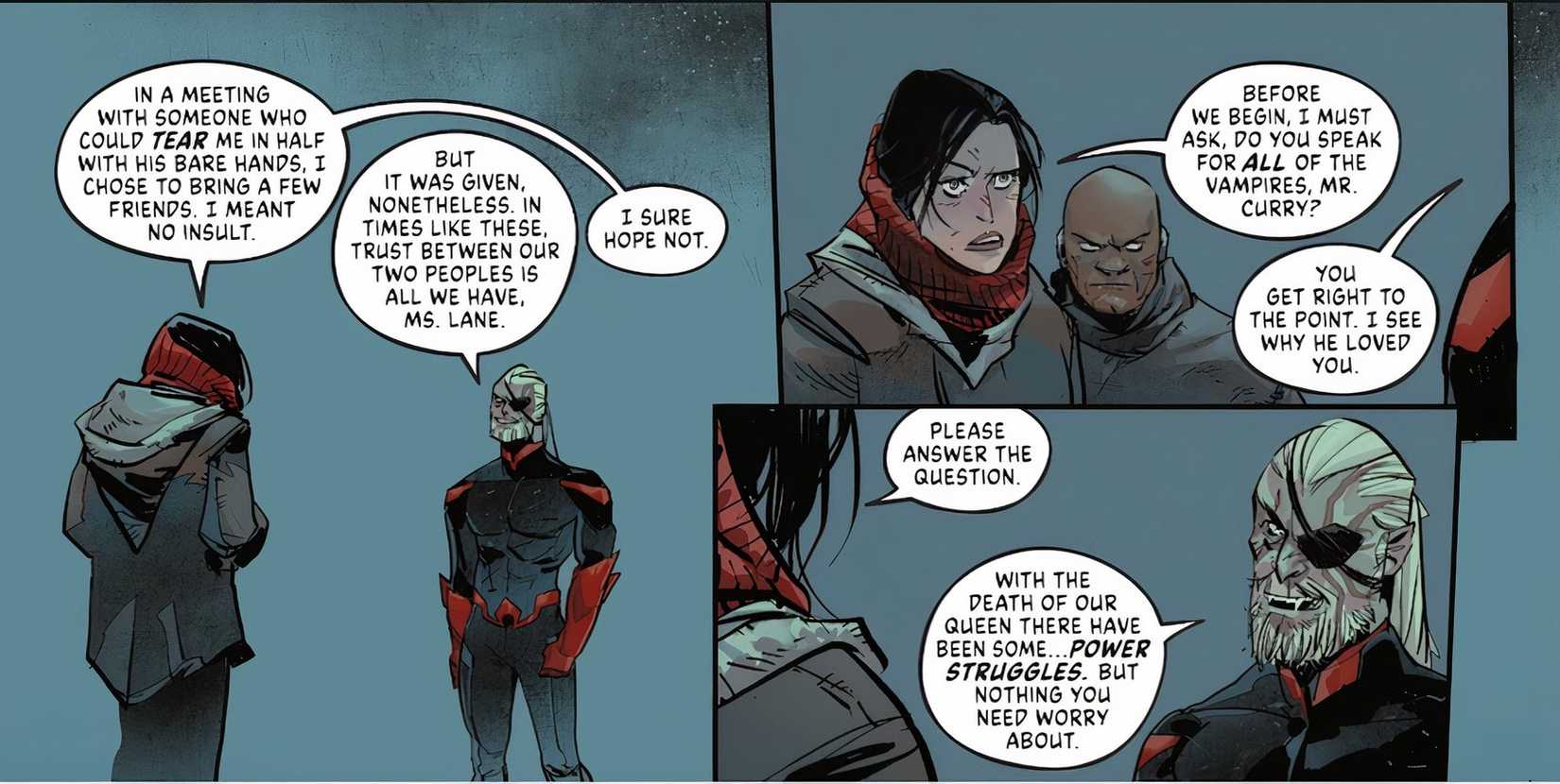 Sin embargo, como los personajes de DC a menudo sobreviven a lo imposible, muchos se preguntaron si Barbara realmente había muerto. El número 2 finalmente ofrece una respuesta definitiva: la reina vampiro Barbara Gordon ya no existe y el vampiro Damian Wayne es el responsable.