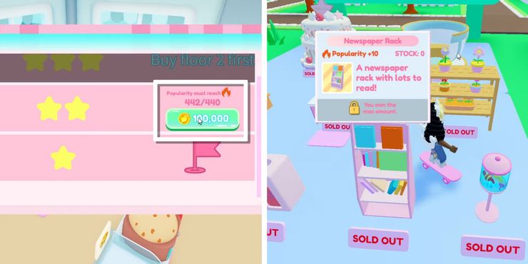 Los ingresos generalmente se cuidarán solos en Roblox Mi café de Hello Kitty, pero los gerentes de los cafés deben aumentar activamente la popularidad de su establecimiento comprando todas las decoraciones en la esquina superior izquierda de la tienda de muebles cercana. Como se mencionó anteriormente, una mayor popularidad equivale a más clientes, lo que genera ingresos adicionales. Cabe señalar que las máquinas son importantes y aumentan la variedad de productos disponibles. Sin embargo, se recomienda que los jugadores solo compren equipo hasta la máquina de helado de vainilla hasta desbloquear el segundo piso. Cualquier otra compra de Máquinas en Roblox no son tan rentables como las decoraciones. Por lo tanto, aumentar la popularidad lo más rápido posible debe ser la prioridad del jugador para desbloquear el segundo piso del café.