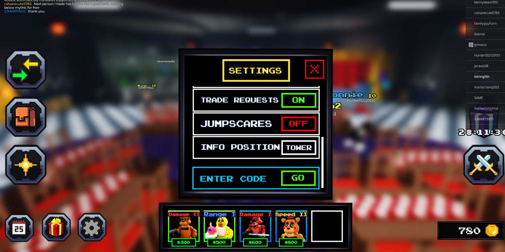 Afortunadamente, este juego lo hace posible. Es bastante sencillo canjear y usar sus códigos inmediatamente.Tendrás que seguir algunos pasos, pero es más fácil de lo que otros juegos han dicho. Primero, debes iniciar Roblox y luego entra en el Cinco noches TD servidor. Una vez en el juego, Haga clic en el engranaje de configuración en la parte inferior izquierda de la pantalla..
