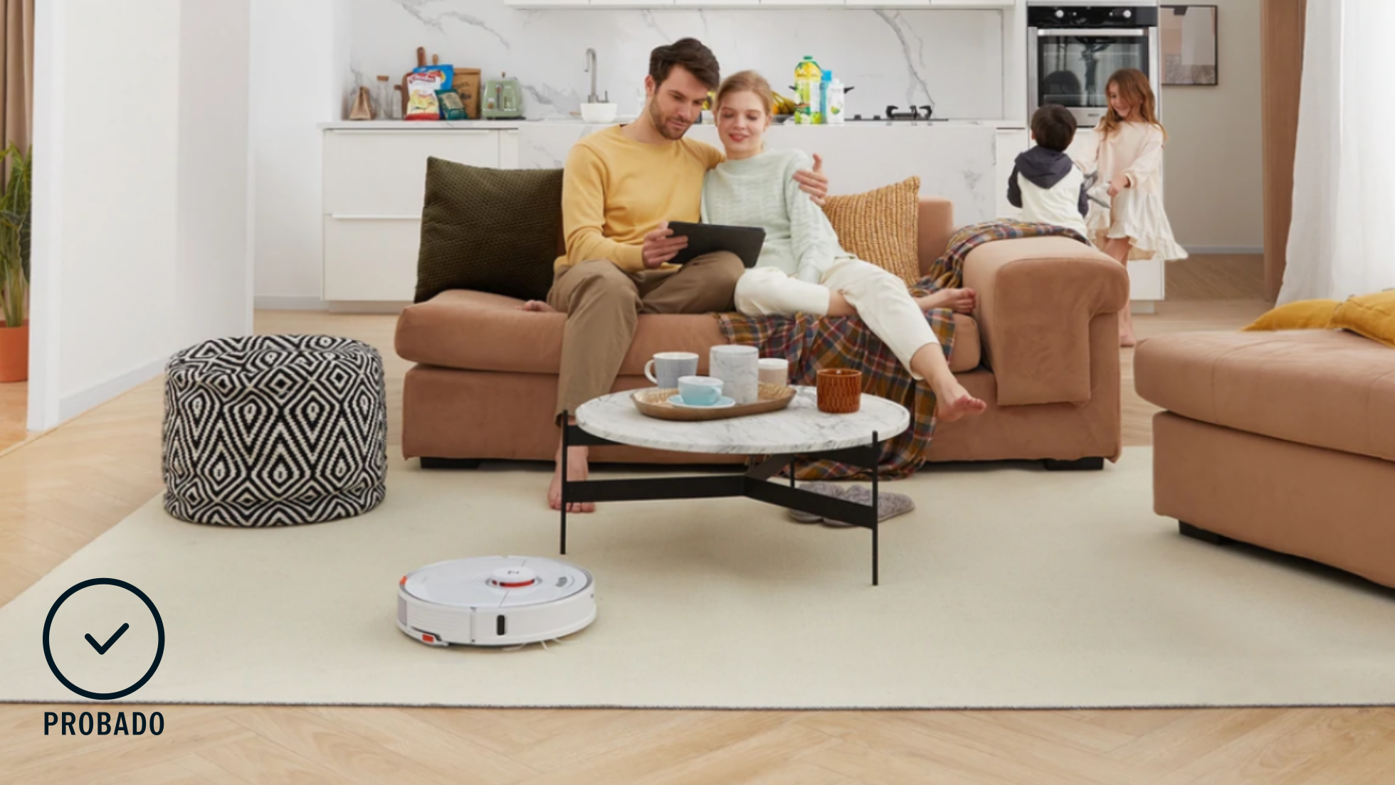 Por otro lado, detecta muy bien las alfombras. Esto supone dos cosas. La primera es que se sube a ellas sin ningún problema si así lo configuramos y continúa aspirando sin atascarse; la segunda es que, cuando lo hace, levanta la bandeja de fregado para evitar que la mopa mojada toque la tela y la manche o estropee. De todas formas, también es posible seleccionar que las evite. Es la opción que hemos elegido, ya que hace una limpieza superficial de ellas (incluso en modo turbo) que sirve como mantenimiento pero poco más.