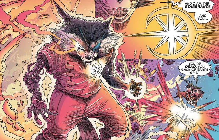 Mientras que el arma mejorada con Groot de Rocket puede dañar al Doctor Spectrum, el poderoso ejecutor espacial se libera rápidamente de sus efectos y ataca a Rocket en serio. Es entonces cuando Rocket gana sorprendentemente los poderes de Starbrand, poniendo finalmente a los dos en pie de igualdad. Starbrand es una de las fuerzas más poderosas de Marvel Comics: un sistema de defensa planetaria que puede empoderar a un individuo para proteger la Tierra de las amenazas cósmicas. Resulta que mientras el Escuadrón Supremo pensó que se habían deshecho de Starbrand en la Zona Negativa, un niño pequeño que llevaba la marca fue rescatado más tarde del espacio por Rocket, y ahora ella le está enviando el poder que necesita para enfrentarse al Doctor Spectrum.