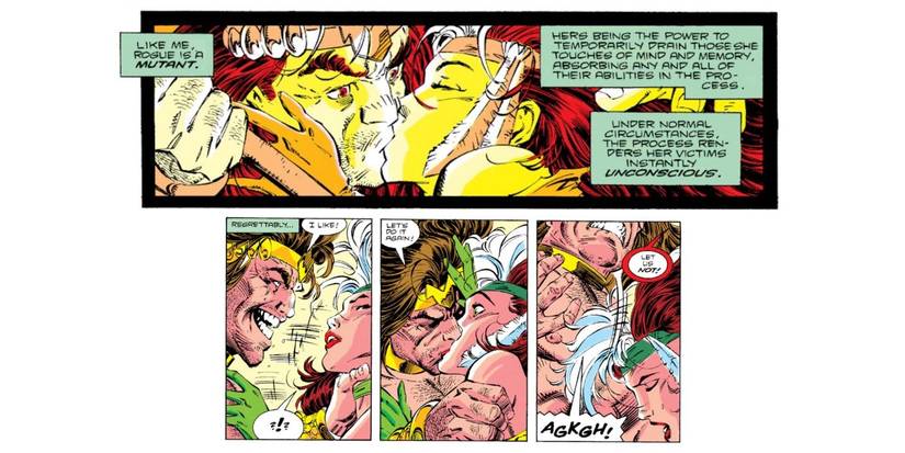 Durante mucho tiempo, el toque absorbente de la fuerza vital de Rogue fue una gran parte de su lucha como mutante, pero Sus habilidades llevaron a algunos de sus momentos más provocativos, con los poderes de Rogue a menudo es una excusa para que los X-Men asuman un estilo de combate más íntimo. En muchas historias de X-Men, Rogue besa a sus enemigos para absorber sus poderes. Un ejemplo de esto se muestra en la historia original de Savage Land dentro de Asombrosa X-Men #274. El X-Men ’97 Animated Series también empujó aún más el emparejamiento de pícaros y magnetos de polarización muy polarizándolo con el anhelo de Rogue por la intimidad física.