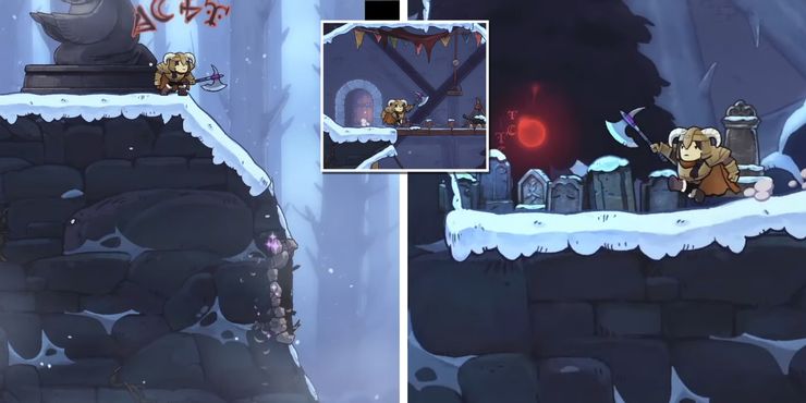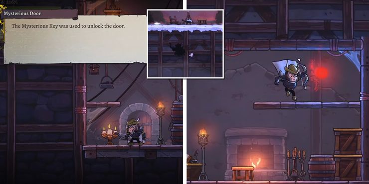 Después de derrotar a Prime Cain, regresa al área de tutoriales y sube a la torre con linternas azules colgantes. Salta hacia el extremo derecho para encontrar una pequeña fogata. Déjate caer dos veces en una cámara oculta y ve a la derecha para encontrar un pasadizo que conduzca a la Puerta Misteriosa. Los jugadores de Roguelike necesitarán la llave misteriosa que adquirieron a lo largo de su viaje para entrar y encontrar la cicatriz final de Divergent Dimensions en Legado pícaro 2.
