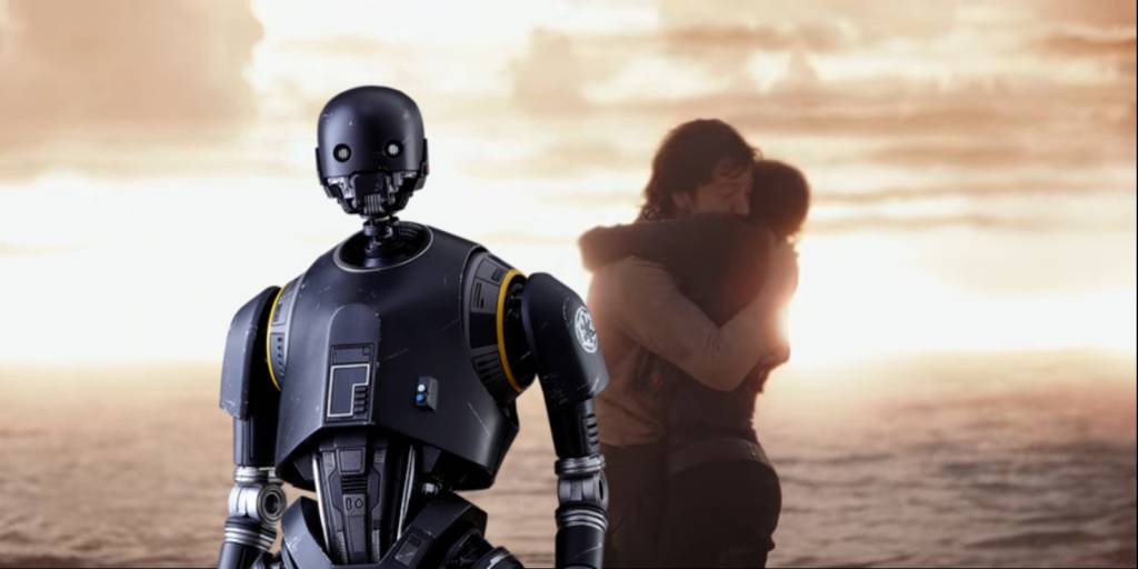 Originalmente, sin embargo, Rogue One tuvo un final mucho más feliz. Una versión temprana del guión no hizo que nadie muriera y en su lugar terminó con una boda. Esto cambió más tarde, como lo revelaron los escritores Gary Whitta y Chris Weitz durante una sesión de preguntas y respuestas en vivo para Rogue One organizada por CineFix e IGN. Edwards y Whitta originalmente tuvieron la idea de matar a todos en Rogue One, pero estaban convencidos de que Disney nunca lo permitiría. En cambio, optaron por que el droide K-2SO de Tudyk muriera en un resplandor de gloria.
