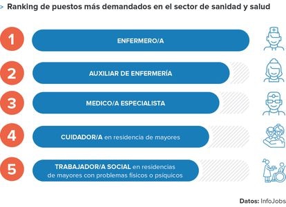 R. Hasta ahora, la única área que ha crecido en el sector privado ha sido la de salud, lo cual no es de extrañar. Durante la pandemia (e incluso ahora) se ha colado en el top 10 de los sectores con más demanda. Posiblemente no será de los que más crezcan a medio o largo plazo, pero va a mantenerse. La necesidad de puestos como el de enfermera o cuidador de mayores ha crecido mucho, y los relacionados con la salud o el bienestar en general van a seguir manteniéndose fuertes en el futuro.