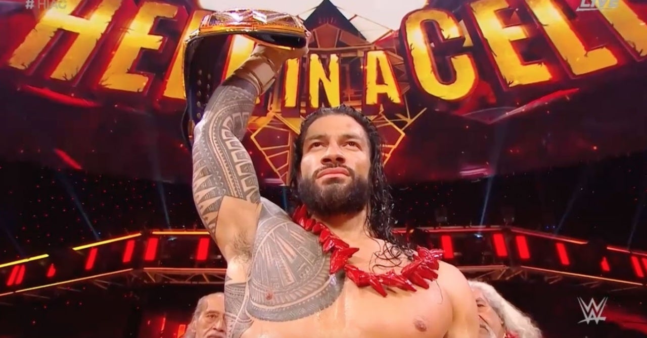 La última pelea por el Campeonato Universal de Roman Reigns y Jey Uso se convirtió una vez más en una escena emotiva, ya que Reigns obligó a Uso a decir: Me retiro dentro de la estructura Hell in a Cell el domingo por la noche. Reigns pasó los últimos 10 minutos tratando de obligar a su primo a renunciar, pero Jey siguió negándose. Llegó un punto en el que el árbitro intentó (y falló) detener el combate, y los oficiales de la WWE se apresuraron al ring para intentar romperlo. Finalmente, Jimmy corrió y protegió a su hermano, haciendo que Reigns rompiera a llorar y dijera “Ya no sé quién soy”.