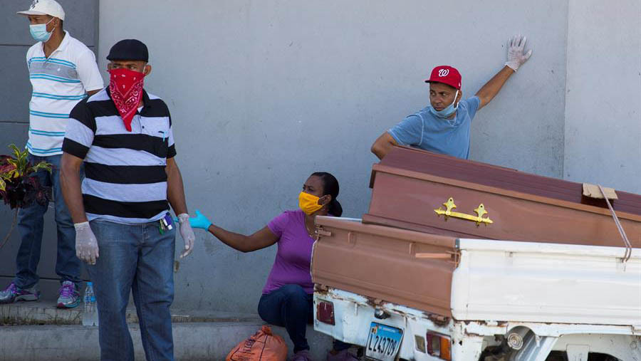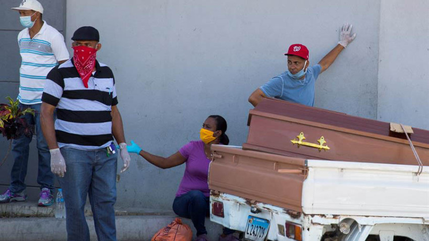 Francisco Alberto Gómez, cubierto con un tapabocas con el escudo dominicano, aguardaba este viernes en la puerta del hospital Moscoso Puello a que le entregaran el cadáver de su tío, quien no paró de beber a pesar de conocer las noticias sobre las primeras muertes.