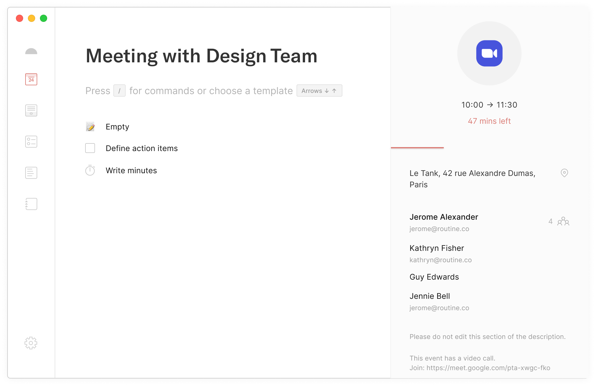 Como Routine se integra directamente con su calendario, también puede abrir cada evento en su calendario y tomar notas desde allí. Esencialmente, cada evento es también una nota en sí mismo.