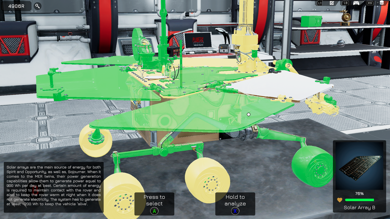 En cada tarea, los jugadores desmontarán un vehículo para encontrar piezas rotas o dañadas, luego lo repararán y restablecerán antes de enviarlo de regreso a la colonia. Las solicitudes de los colonos pueden ser exigentes y divertidas, lo que se suma a la atmósfera mediocre de estar atrapado dentro de un taller de reparación de un rover de Marte. Las únicas otras fuentes de emoción provienen de los juegos arcade extrañamente incluidos como Space Invaders y las tareas premium cronometradas. Desafortunadamente, las tareas premium no son un gran desafío después de actualizar algunas habilidades.