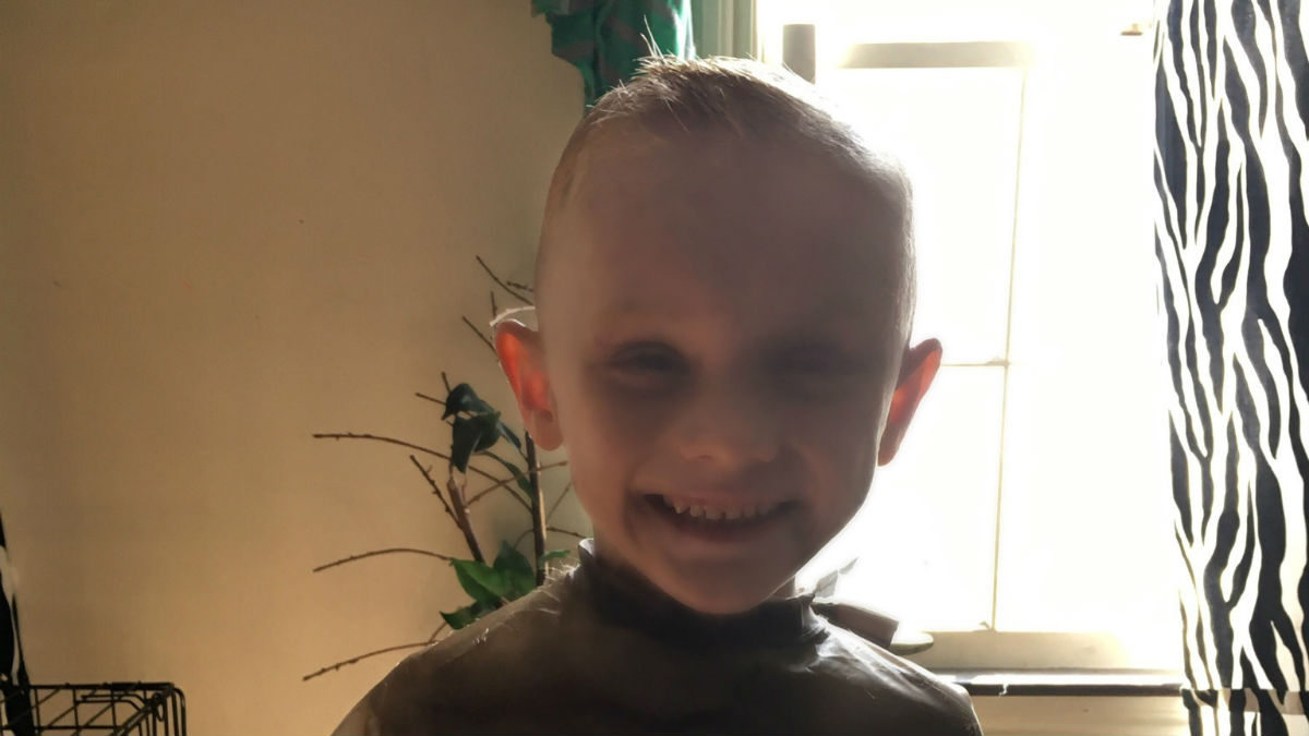 El niño tiene el pelo corto y rubio y mide aproximadamente 3 pies y cinco pulgadas de alto y 70 libras de peso.