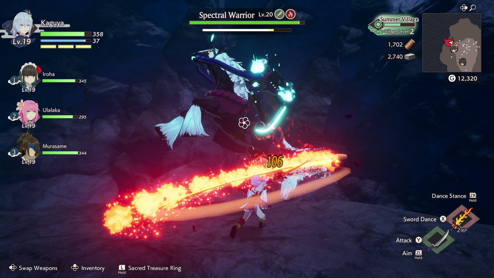 Combate en Rune Factory: Guardianes de Azuma
