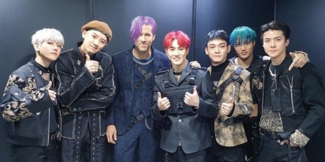 Tomando Instagram para compartir las fotos de su reunión, Reynolds dijo lo siguiente acerca de su encuentro con EXO: "Verificado, estoy en la banda. No, en serio. El guardia de seguridad que me burló fue parte de una secuencia cuidadosamente coreografiada". yo y los chicos hemos estado trabajando desde nuestro estudio en el sótano en mi imaginación ".
