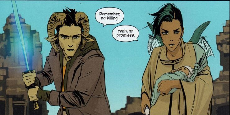 Esta cualidad no ha cambiado ni un poco en SagaLa segunda mitad tampoco: incluso sin Marko, mientras ella lamenta su pérdida, es capaz de encontrar un nuevo lugar no solo para ella y Hazel, sino también para Squire. Puede que el contrabando no sea el negocio más admirable, pero ella juega las cartas que le tocan y lo hace con maestría.