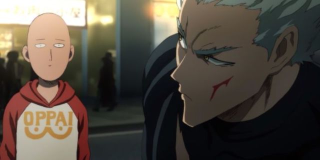 Saitama levanta su brazo y golpea a Garou con un golpe propio, derribándolo cuando termina el episodio.
