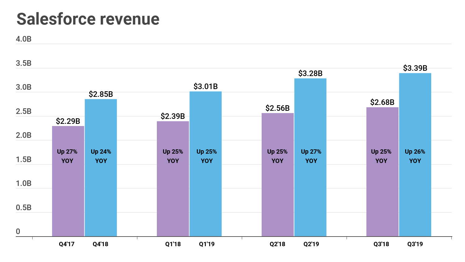Al final, una empresa que cotiza en bolsa como Salesforce será juzgada por la cantidad de dinero que gana, y resulta que Salesforce es bastante bueno en esto, como lo demostró una vez más este año. La compañía creció cada trimestre en más del 24 por ciento interanual y terminó el año con $ 12.530 millones en ingresos. Sobre la base de su último trimestre de $ 3.39 mil millones, la compañía terminó el año con una tasa de ejecución de $ 13.56 mil millones.