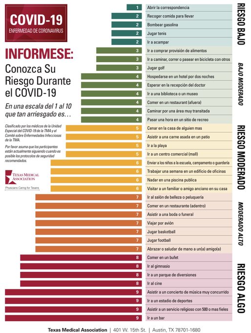 La Asociación Médica de Texas (ATM) publicó una clasificación de los niveles de riesgo que conllevan muchas de las actividades cotidianas.
